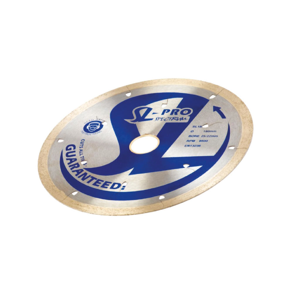 Continuous rim diamond blade for cutting ceramic tiles.